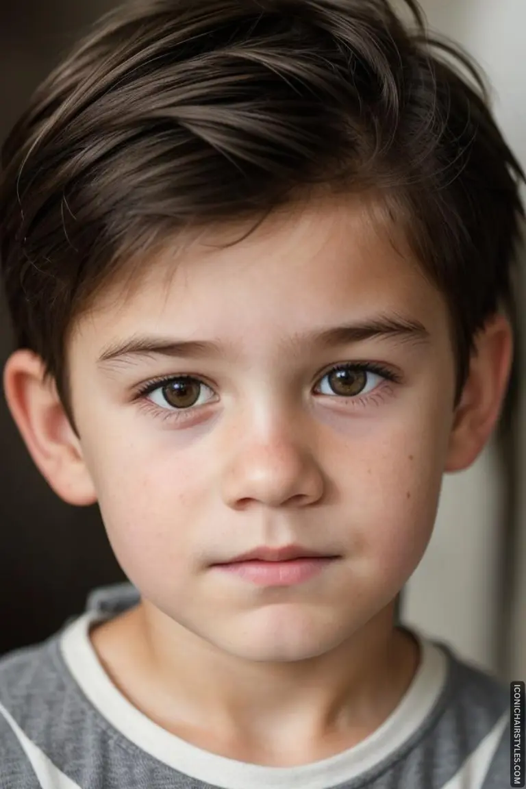 You won't need frequent trims. This cut is always stylish. It's perfect for laid-back boys. You can dress it up or down. The long-swept bangs are a cool choice.