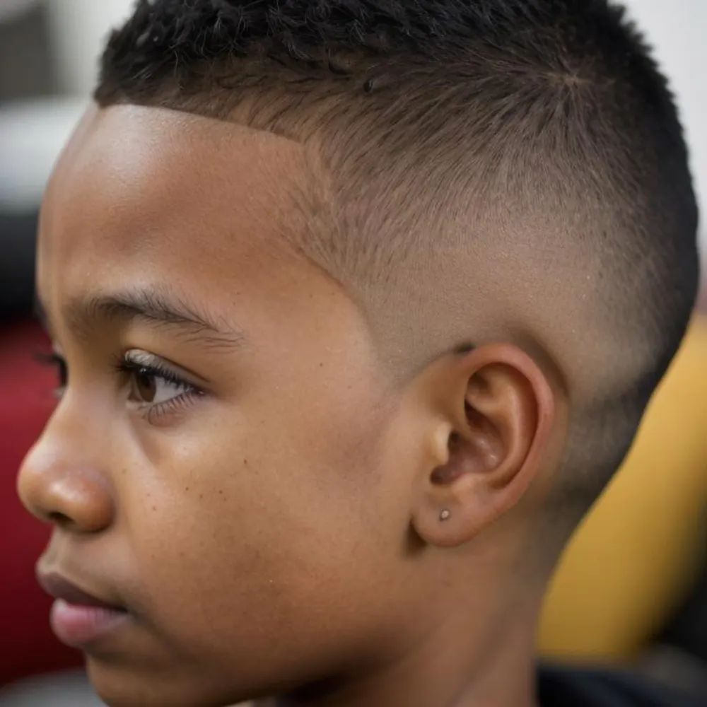 Want a bold, stylish look? Try a high-top fade. The sides fade up high. The top is left longer. You can shape it flat or rounded; use some strong hold product. This cut is very dramatic. It's perfect for confident boys.